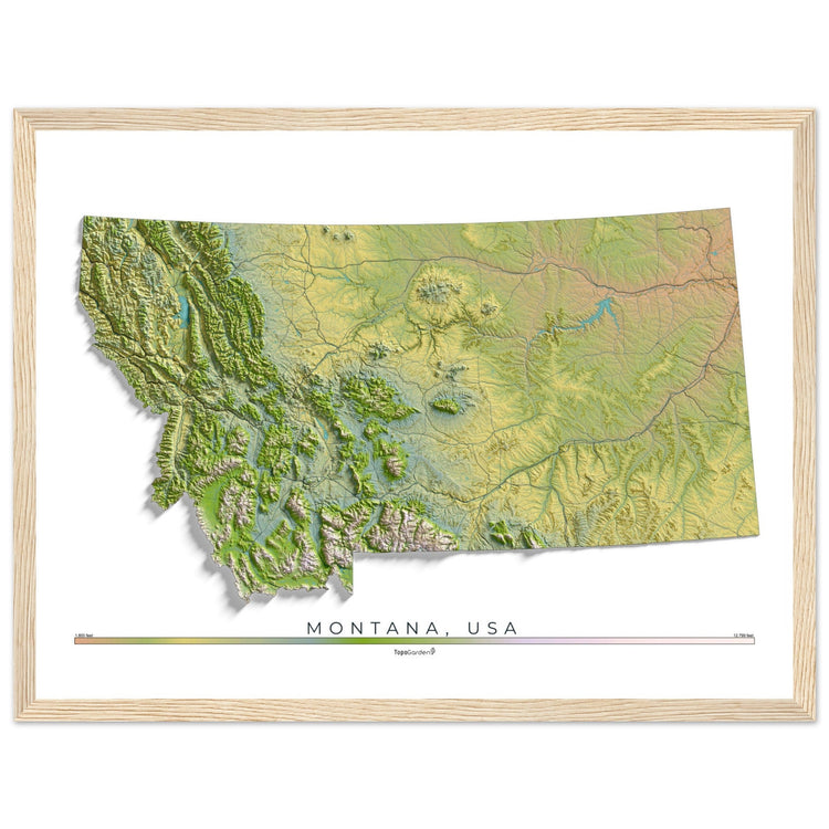 Colorful Hypsometric Maps of Montana | Hydrology, Roads, Contours and Shading