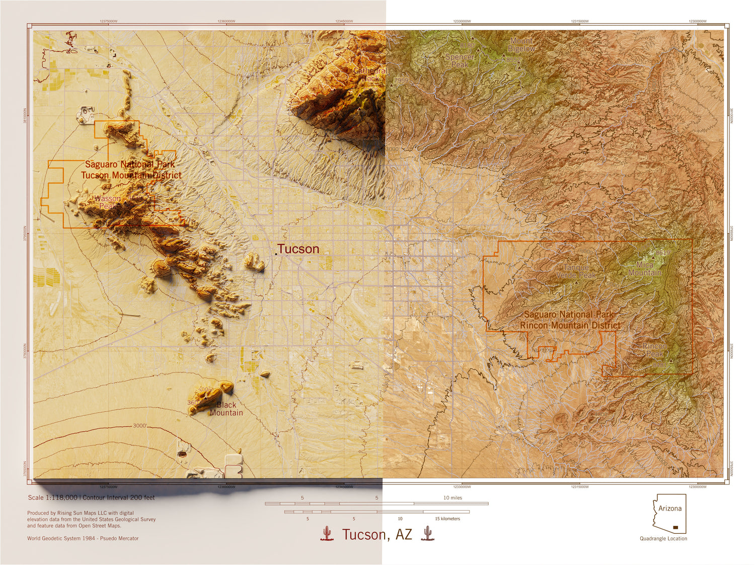When we use hill shading, aka relief shading, we make maps appear to pop off the page. Using detailed models and sophisticated software, we can make our maps appear 3 dimensional.