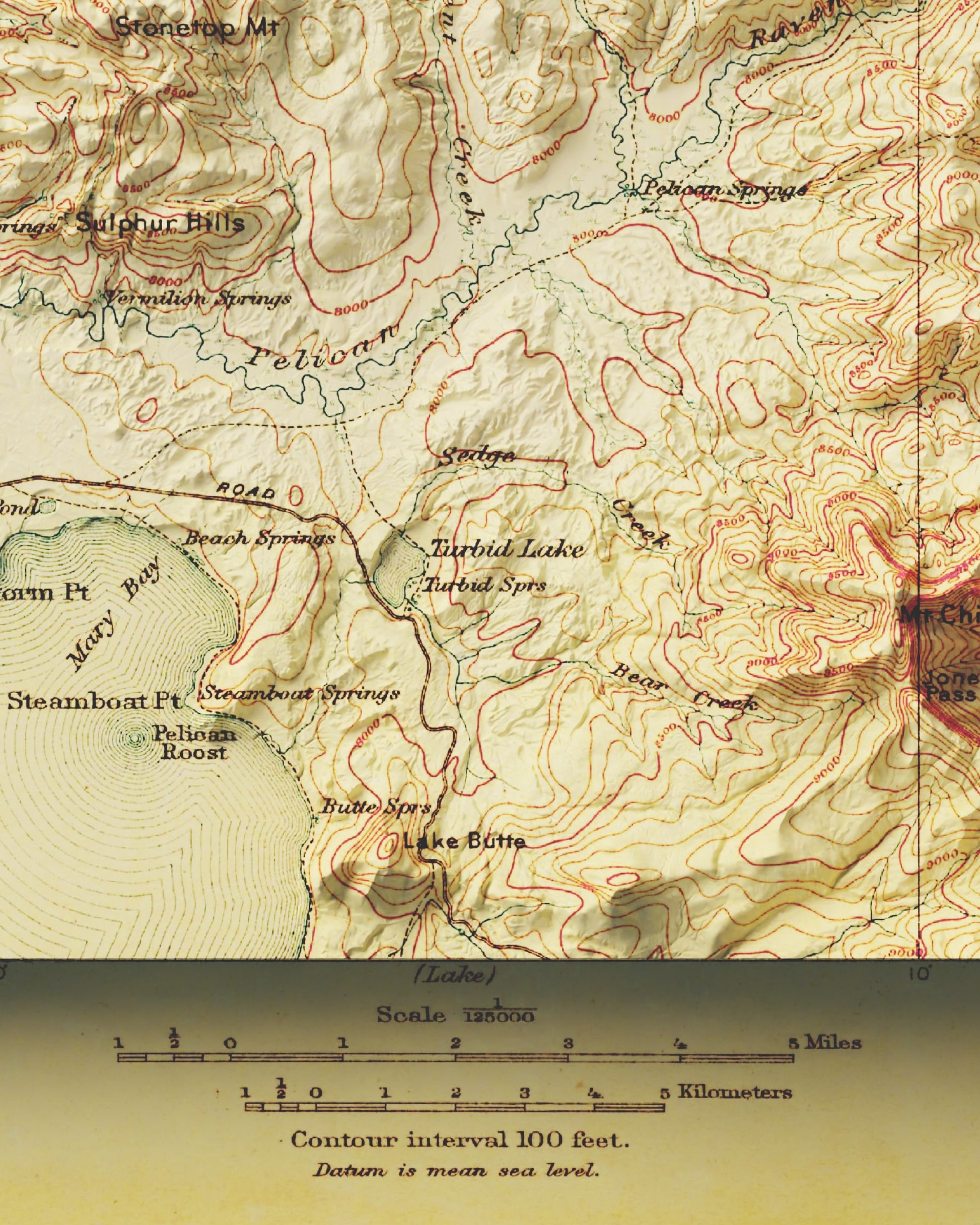 1911 Yellowstone National Park, WY | Canyon | 30'x30' Shaded Historic USGS Map