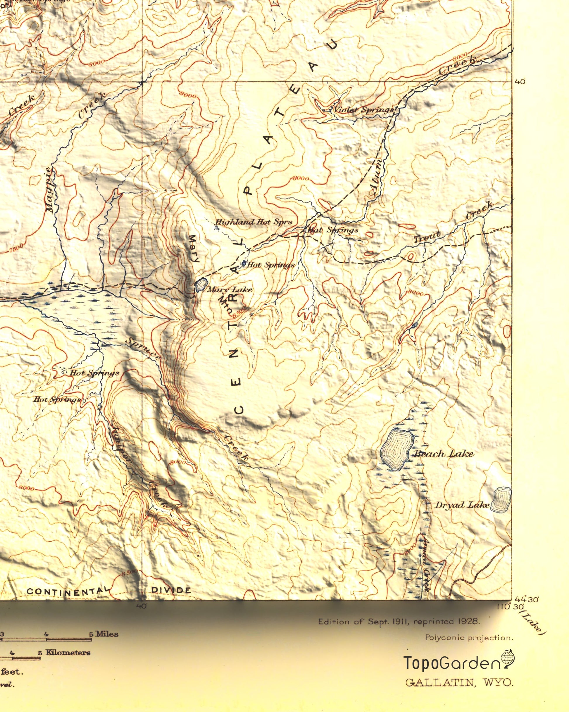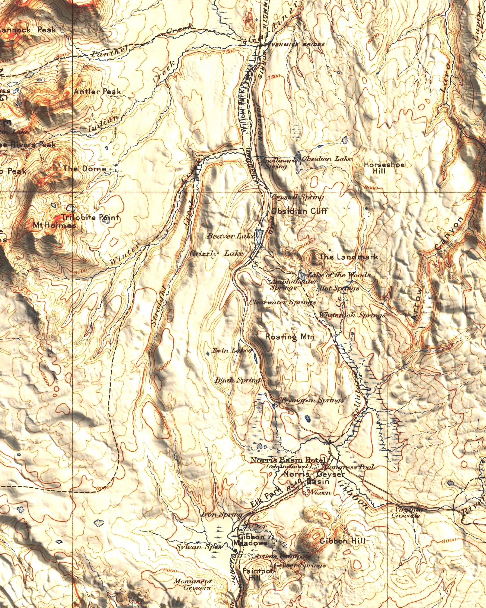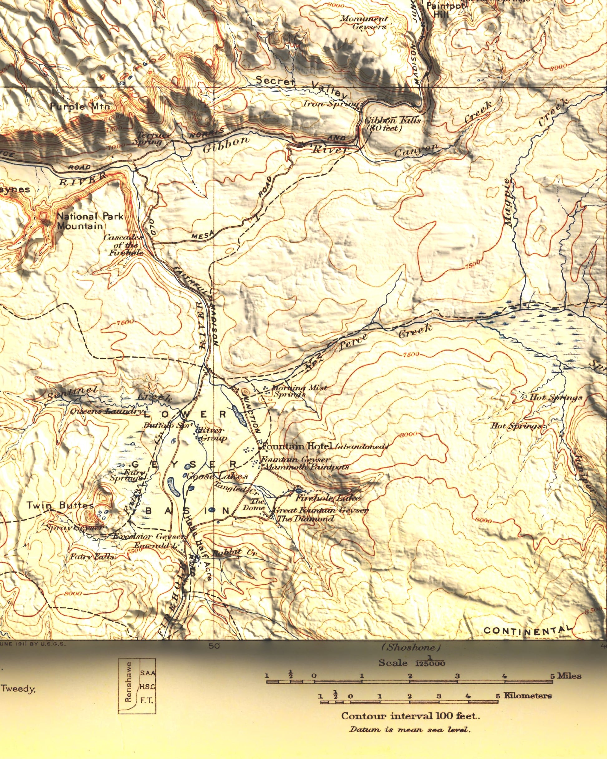 1911 Yellowstone National Park | Gallatin / NW Yellowstone | 30'x30' Shaded Historic USGS Map