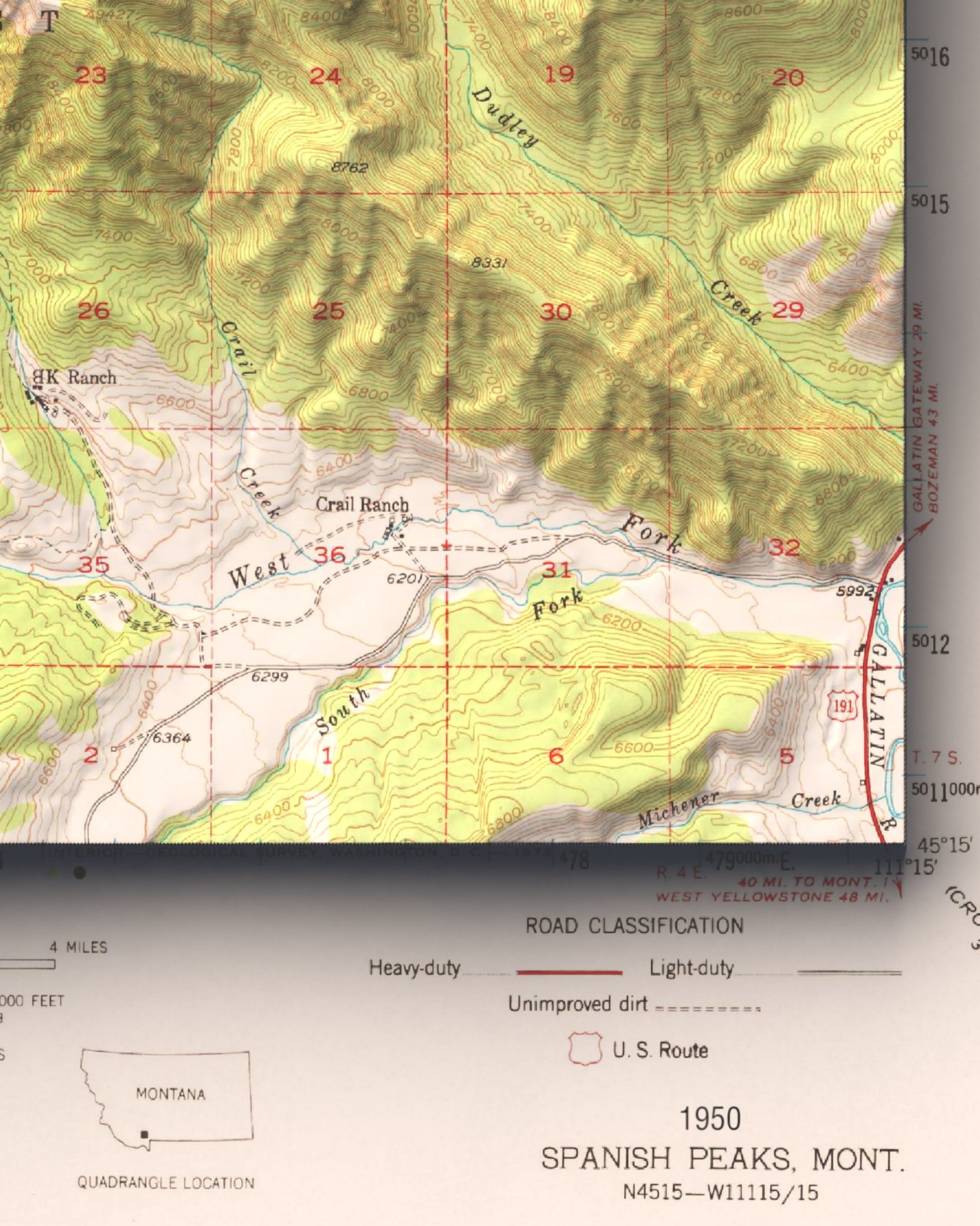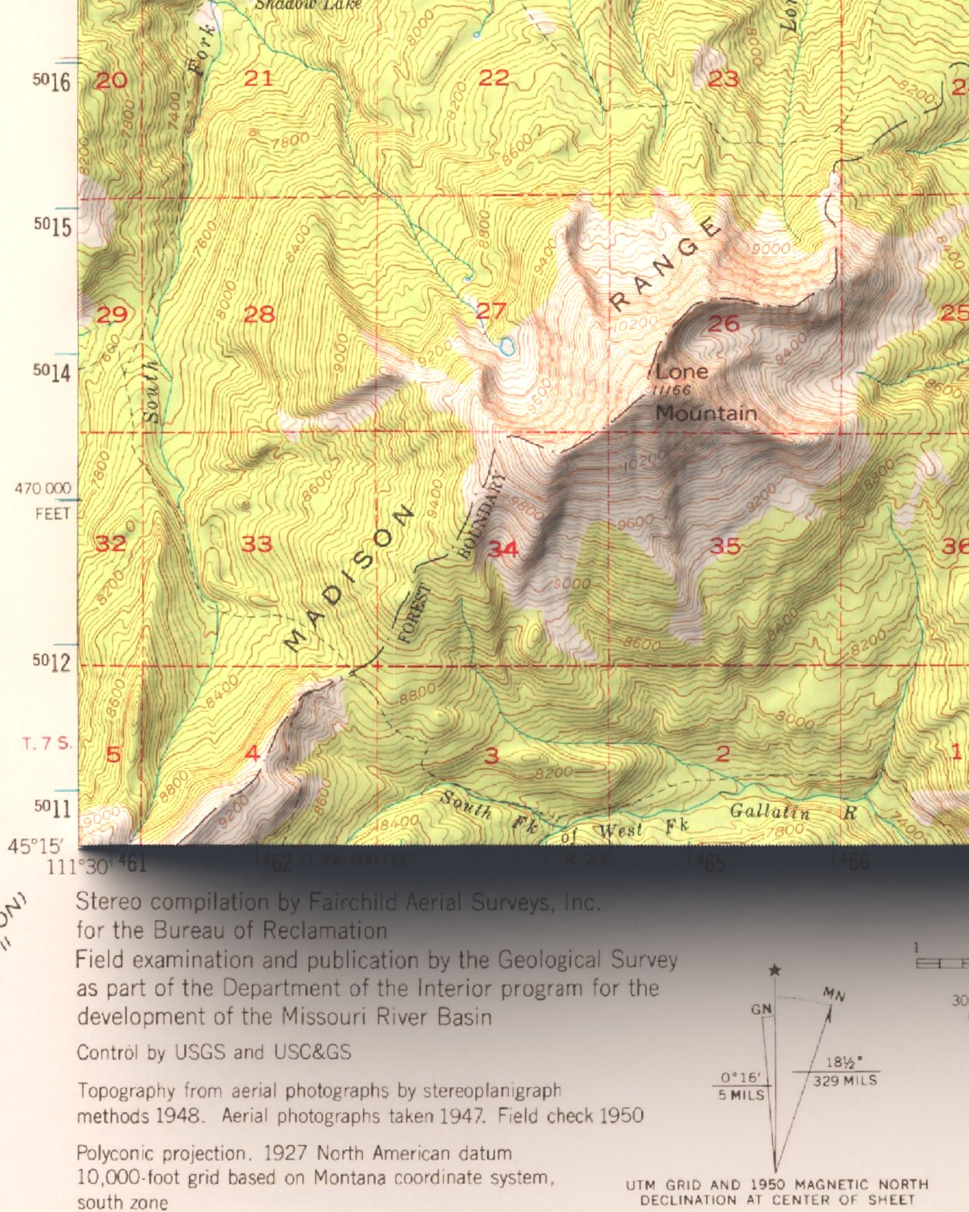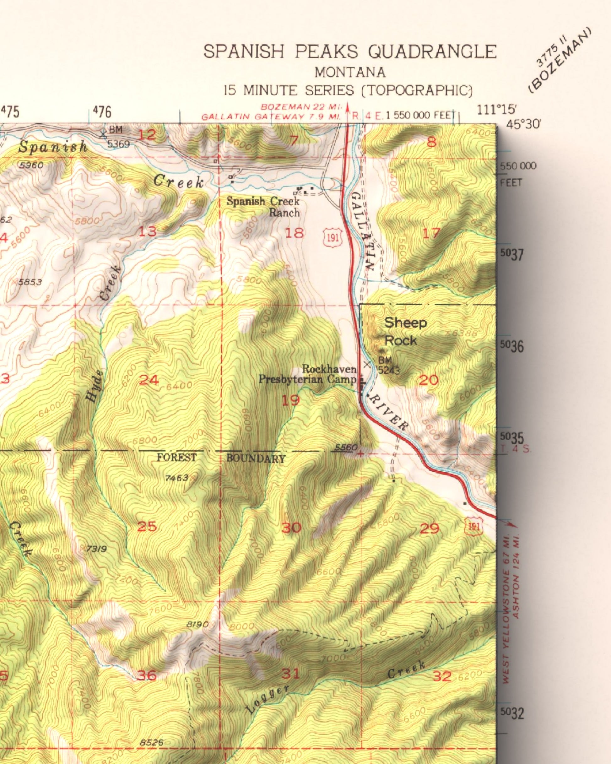 1950 Big Sky, MT | 15'x15' Shaded Historic USGS Map