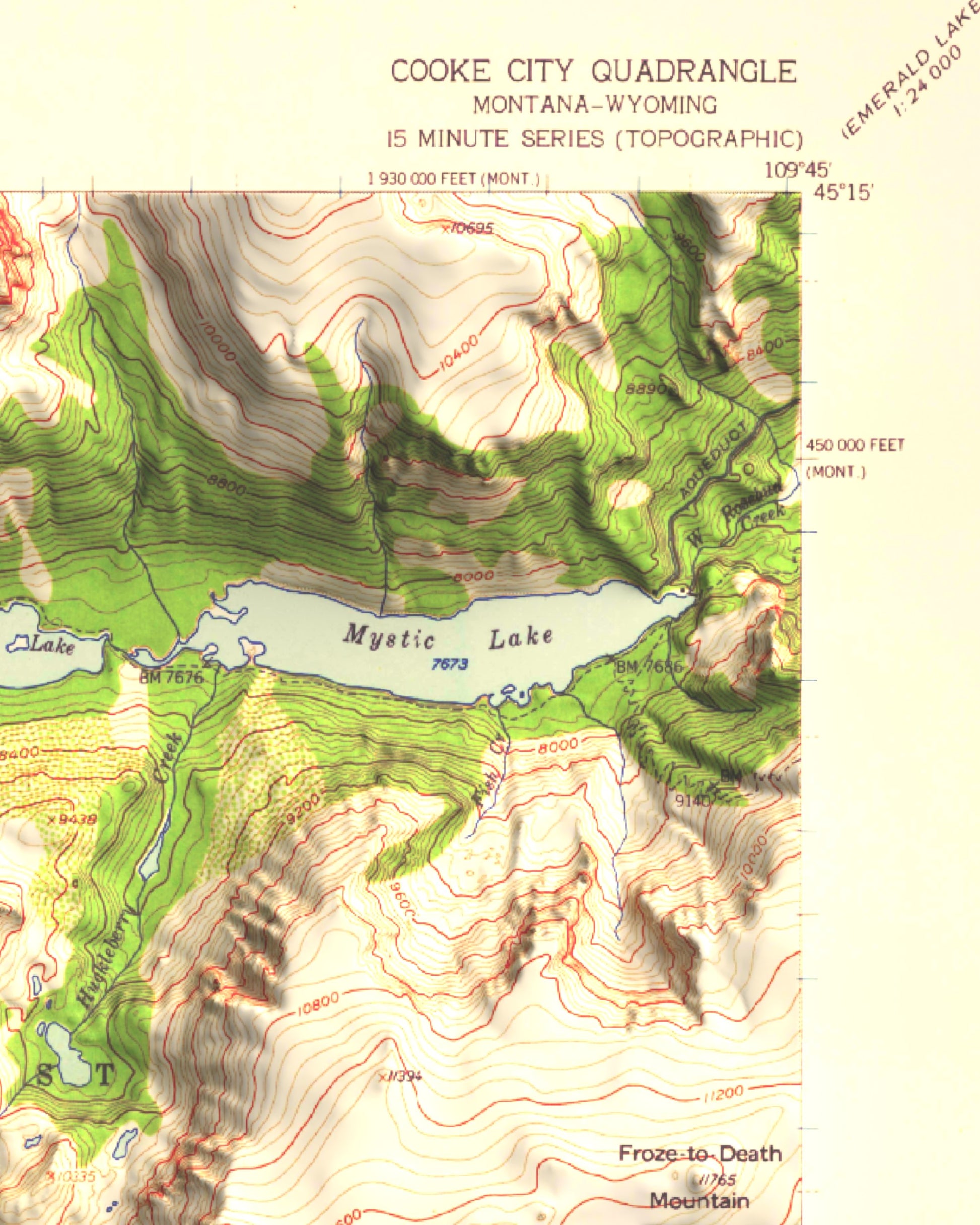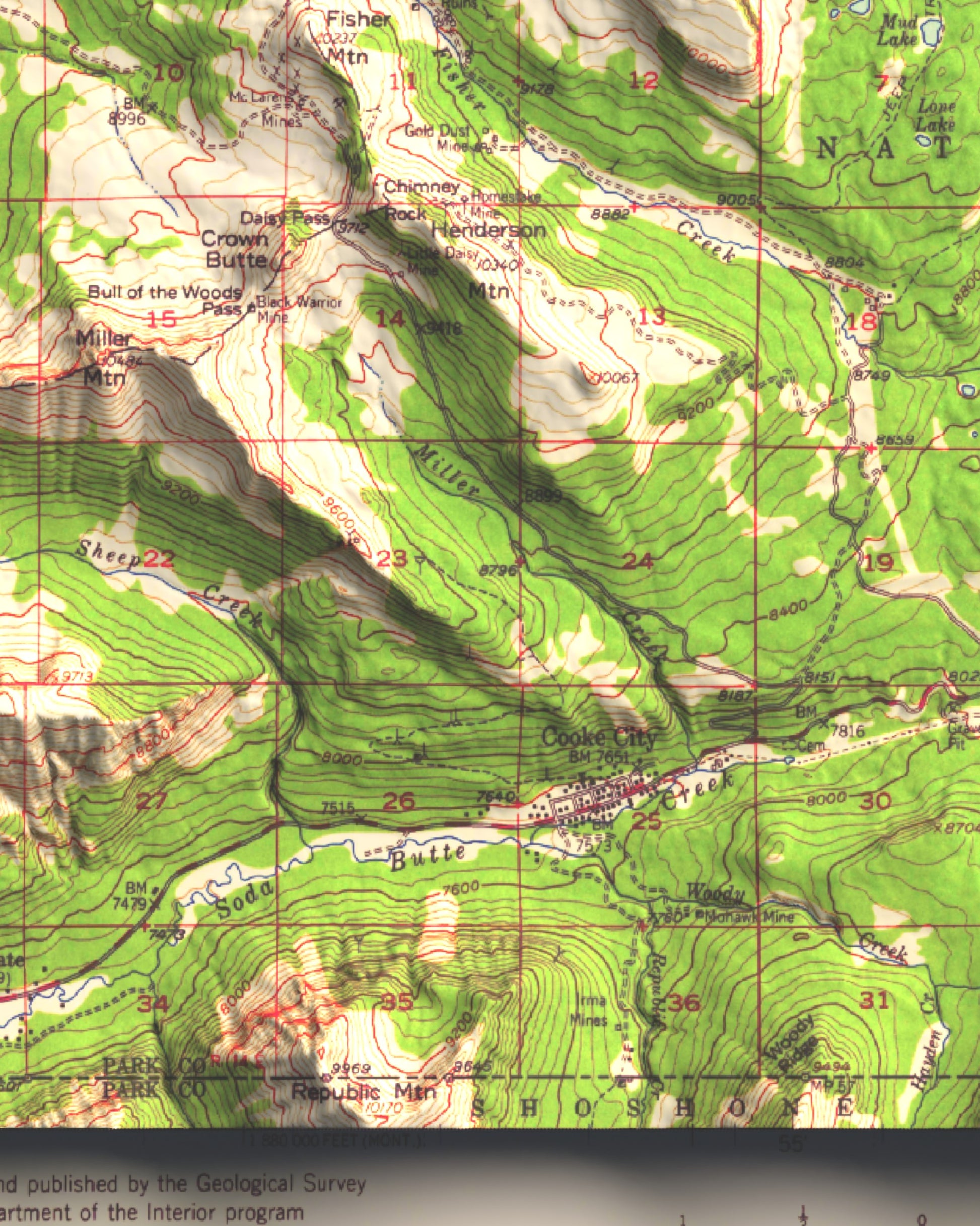 1959 Cooke City, MT | 15'x15' Shaded Historic USGS Map