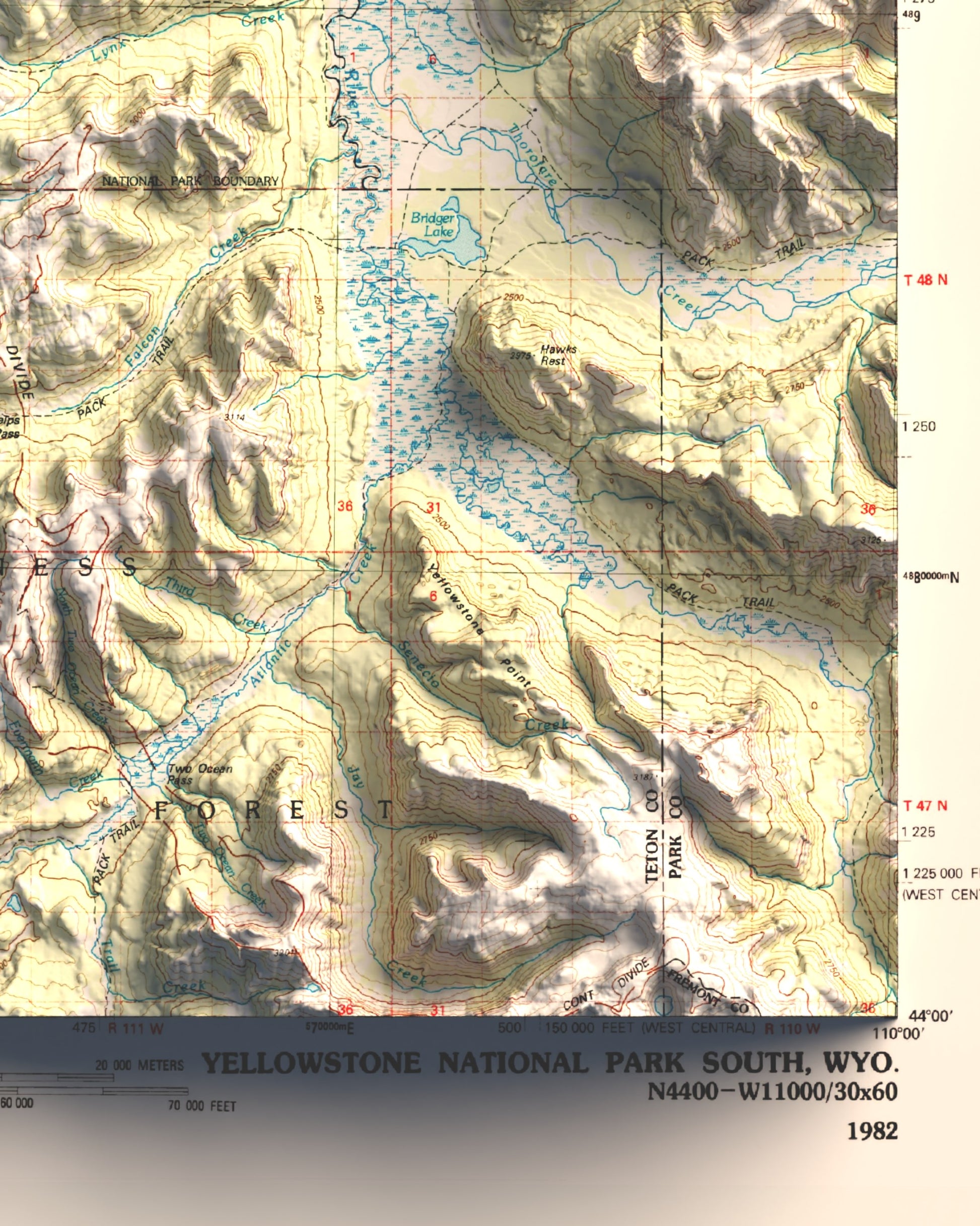1982 Southern Yellowstone National Park | 30'x60' Shaded Historic USGS Map