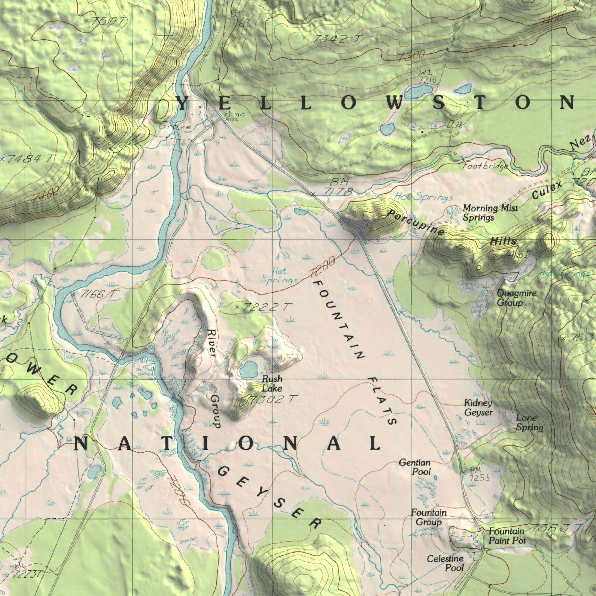 1986 Yellowstone National Park | Middle and Lower Geyser Basins | 7.5'x7.5' Shaded Historic USGS Map