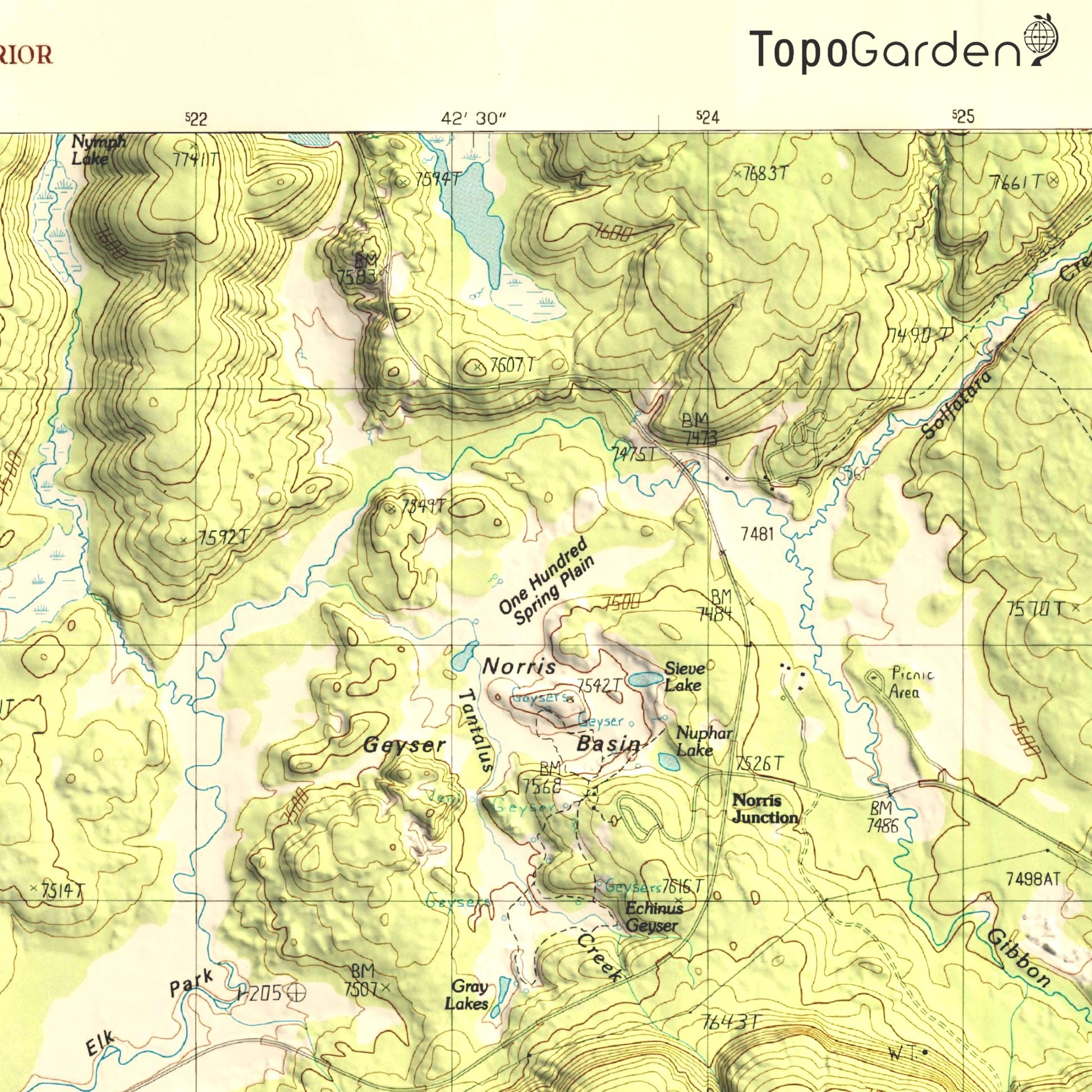 1986 Yellowstone National Park | Norris Geyser Basin | 7.5'x7.5' Shaded Historic USGS Map