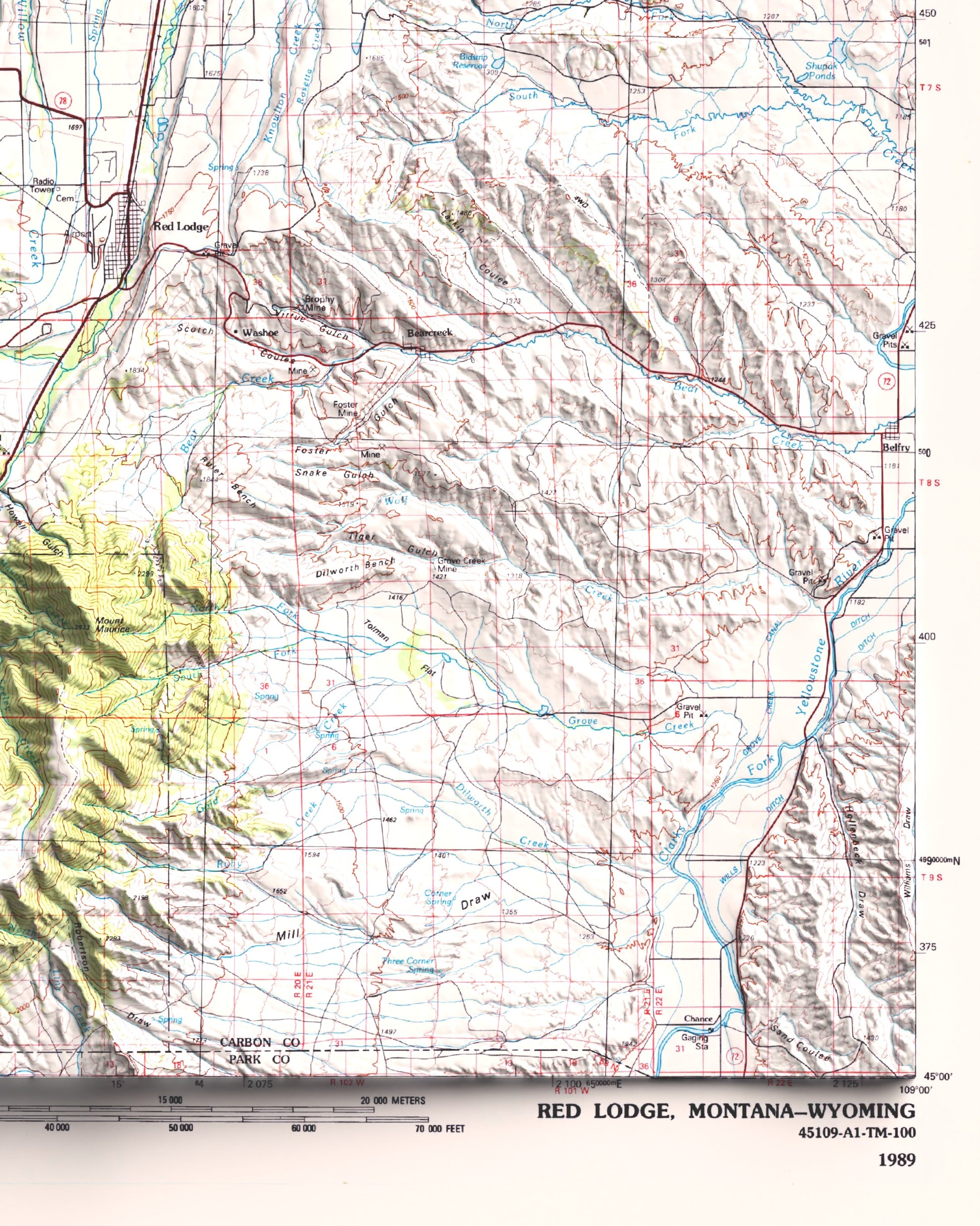 1989 Red Lodge & Beartooth Mountains, MT | 30'x60' Shaded Historic USGS Map