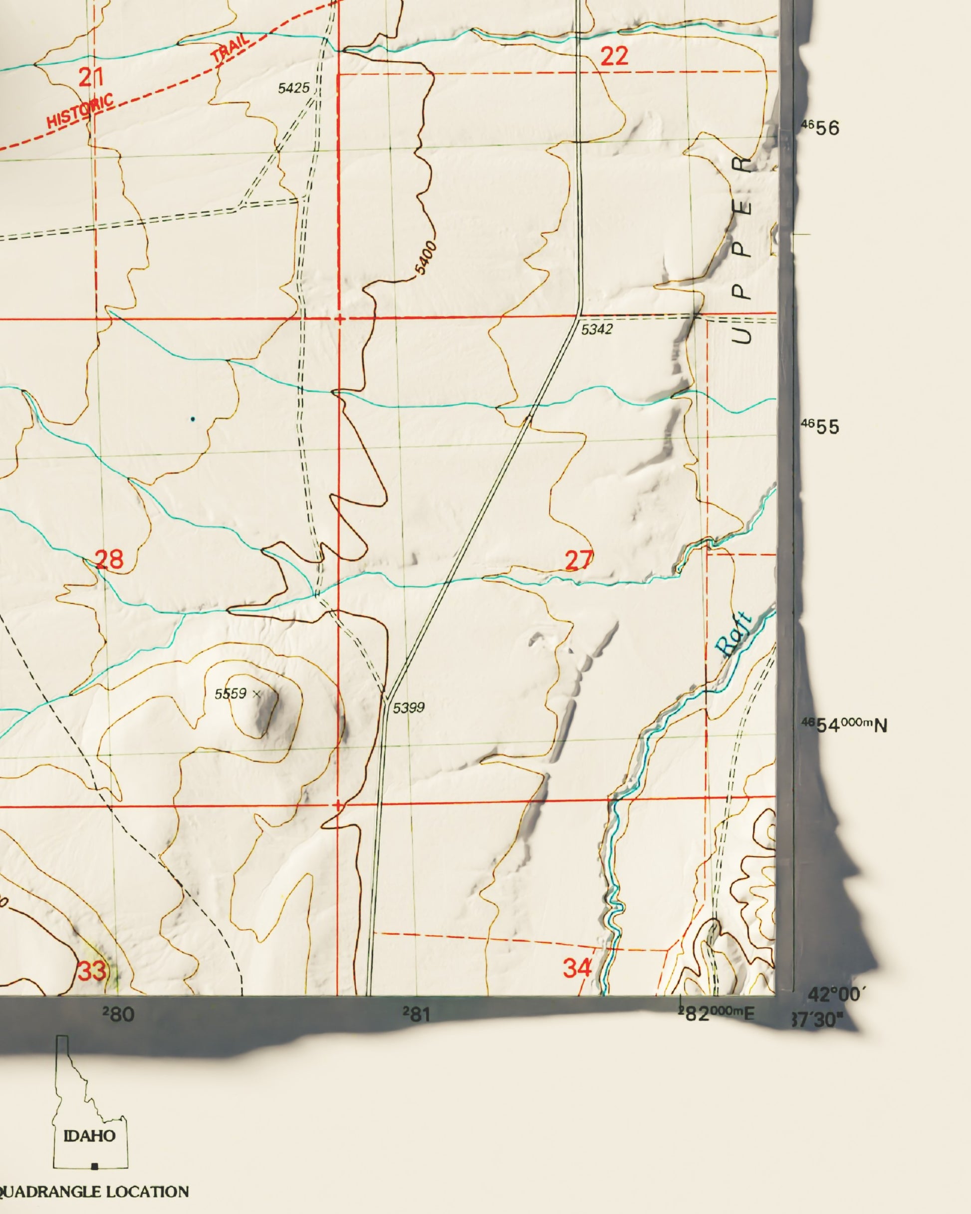 Please note: While relief shading gives some of our maps a raised, 3D effect, the maps are flat and two-dimensional.