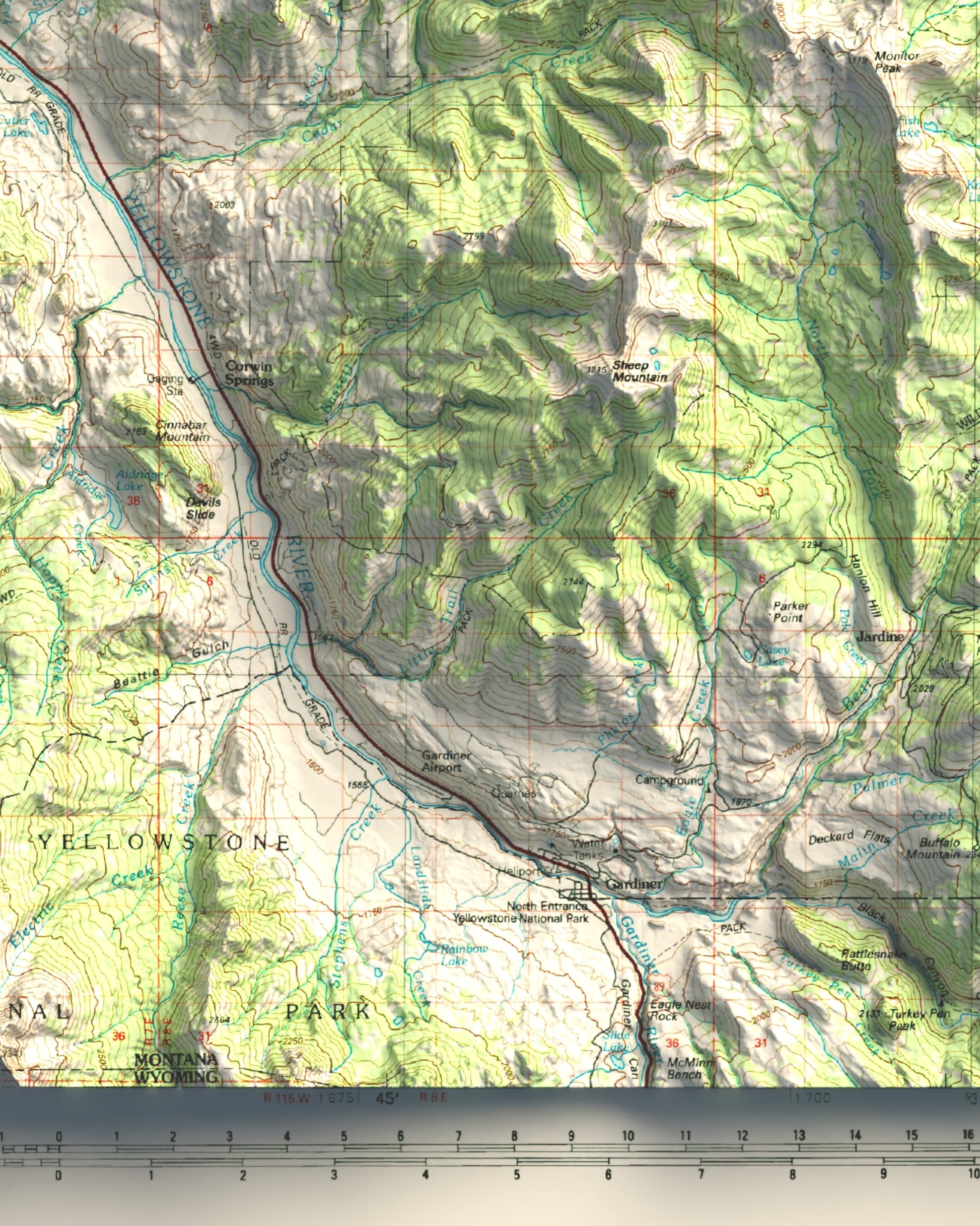 1992 Gardiner, MT | 30'x60' Shaded Historic USGS Map
