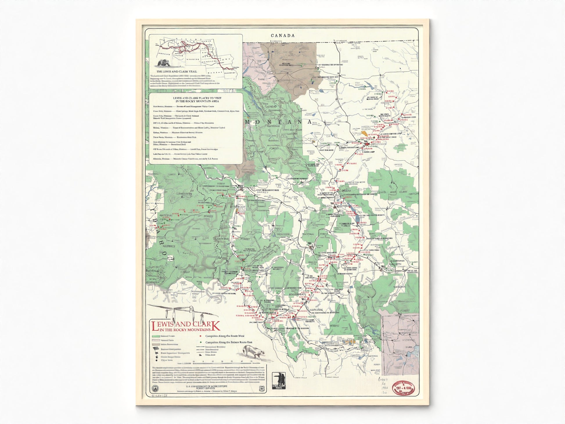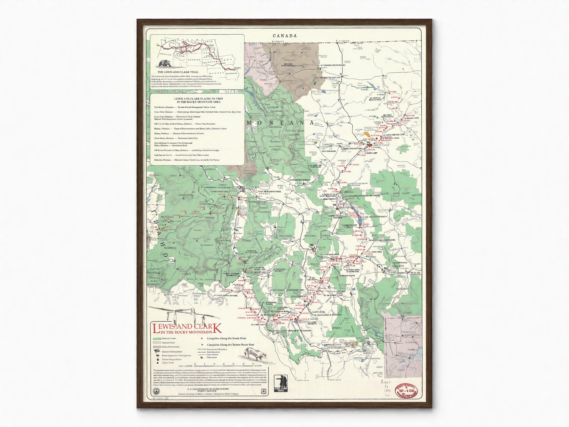 This museum-quality map elegantly illustrates Lewis and Clark's historic route through the Rocky Mountains, meticulously capturing their campsites, topographic details, and key expedition landmarks. Designed for both style and intellect, it seamlessly blends historical accuracy with modern insights, highlighting must-visit locations for today’s explorers inspired by the legendary journey. Printed on premium archival materials and available in high-quality frames, this sophisticated piece is perfect for history enthusiasts and adventurers alike. Plus, enjoy free shipping for a hassle-free experience.