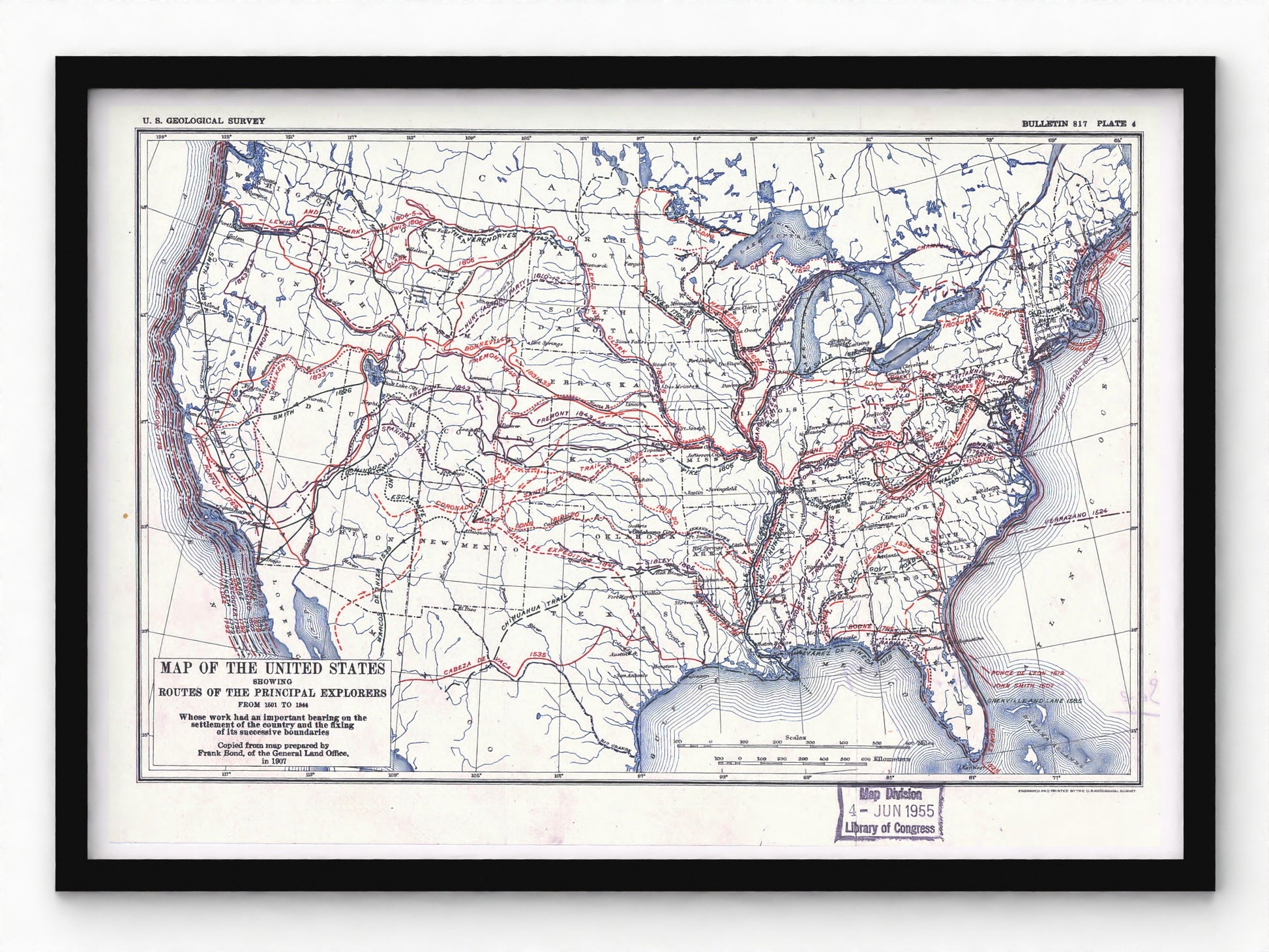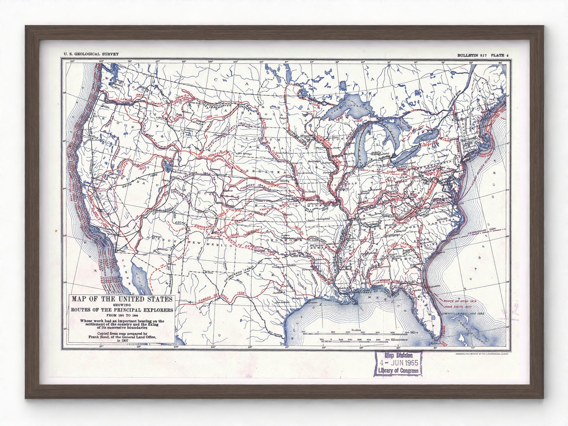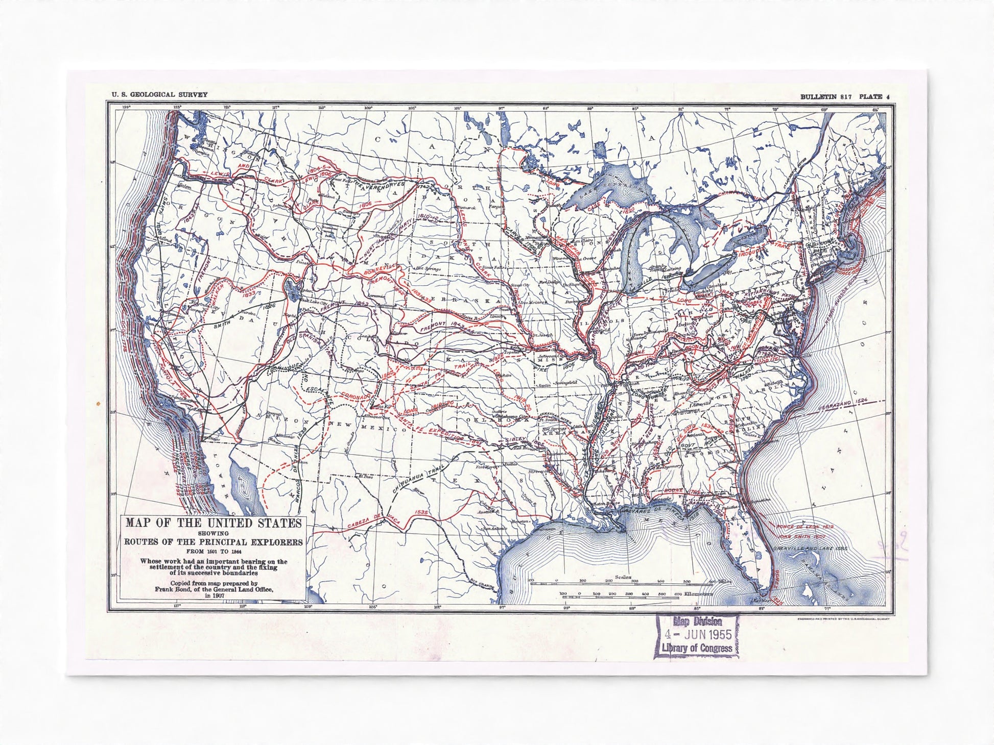 Major expeditions and their routes from 1501 to 1844, along with the explorers who led them: 16th Century (1501–1600) – Early European Exploration Juan Ponce de León (1513 & 1521) – Sailed from Puerto Rico to Florida, becoming the first European to explore the region. Hernando de Soto (1539–1542) – Traveled from Florida through the southeastern U.S., crossing the Mississippi River. Francisco Vázquez de Coronado (1540–1542) – Led an expedition from Mexico through Arizona, New Mexico, Texas, Oklahoma, and Kansas, searching for gold. Jacques Cartier (1534–1542) – Sailed up the St. Lawrence River, claiming Canada for France. Henry Hudson (1609–1611) – Explored the Hudson River (New York) and Hudson Bay (Canada) while searching for a Northwest Passage. 17th & 18th Century (1600–1799) – Fur Trade & Colonization Samuel de Champlain (1608–1615) – Mapped and explored the Great Lakes and northeastern U.S., founding Quebec. René-Robert Cavelier, Sieur de La Salle (1679–1682) – Followed the Mississippi River to the Gulf of Mexico, claiming Louisiana for France. James Cook (1778–1779) – Mapped the Pacific Northwest coast and Alaska, stopping in Hawaii. 19th Century (1800–1844) – U.S. Expansion & Scientific Exploration Lewis and Clark Expedition (1804–1806) – Traveled from St. Louis to the Pacific Coast, mapping the western U.S. after the Louisiana Purchase. Zebulon Pike Expedition (1806–1807) – Explored the Rocky Mountains and southwestern U.S., reaching present-day Colorado and New Mexico. Stephen H. Long Expedition (1819–1820) – Mapped the Great Plains, identifying it as the “Great American Desert.” John C. Frémont Expeditions (1842–1844) – Surveyed the Oregon Trail, Great Basin, and Sierra Nevada, producing detailed maps of the West. Each of these expeditions contributed to the mapping and understanding of North America, making them a fascinating part of exploration history.