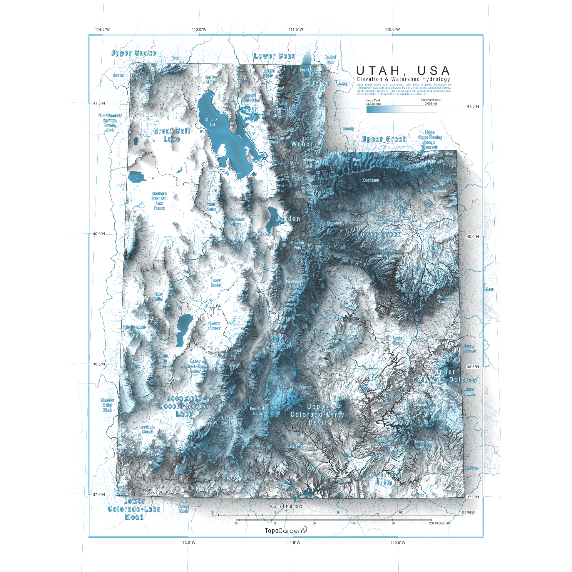 Key Features: Watershed Boundaries: The map clearly shows two levels of watershed boundaries, highlighting smaller tributaries and the larger watersheds they form. This provides a clear view of how water moves through Utah’s varied terrain. Labeled Major Rivers: Major rivers are prominently labeled, including the Colorado River, Green River, Sevier River, Bear River, Virgin River, San Juan River, Provo River, Weber River, Duchesne River, Escalante River, Jordan River, and Price River. Each river’s path through the state is easy to follow, giving you insight into Utah’s unique hydrology. Significant Tributaries: Important tributaries are also outlined and labeled, showing how these smaller streams contribute to the larger water systems in Utah. This detail helps you understand the interconnected nature of the state’s waterways. Recreational Highlights: Utah’s rivers are more than just lines on a map—they offer fantastic opportunities for outdoor recreation. The Green River is famous for its scenic floats through breathtaking canyons, while the Colorado River is perfect for both thrilling rapids and relaxing paddles. The Provo River is a favorite for fishing and peaceful floating, winding through beautiful mountain landscapes.